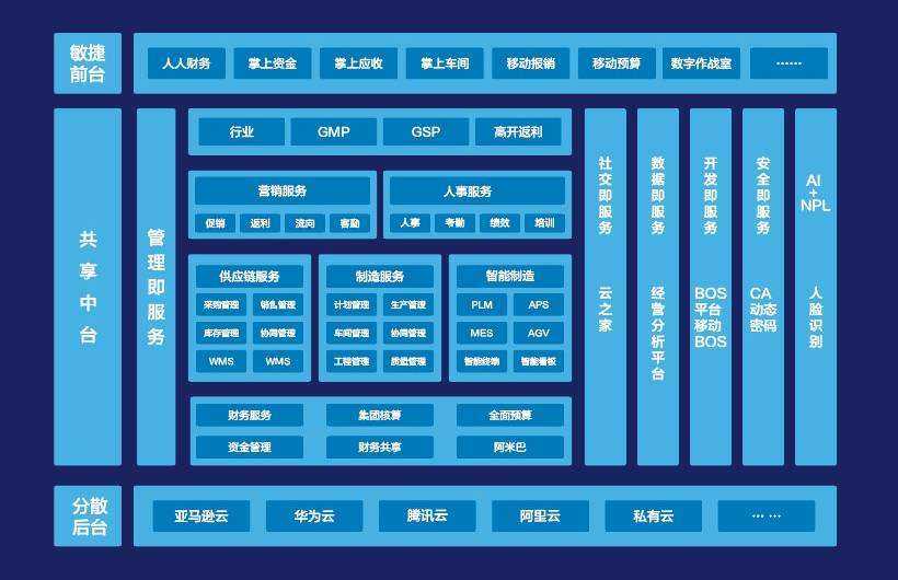 這么多系統(tǒng)中以誰為主數(shù)據(jù)呢?誰管理全、信息量大,我覺得一定是ERP系統(tǒng),也就是金蝶云。它是核心的管理層,所以我們設(shè)計(jì)系統(tǒng)的時候一定以它為主,其他系統(tǒng)都以ERP為維度建立自己的數(shù)據(jù)體系,保證它們之間是完全互聯(lián)互通的,我覺得這是大家構(gòu)建這個體系必須要遵循的。
