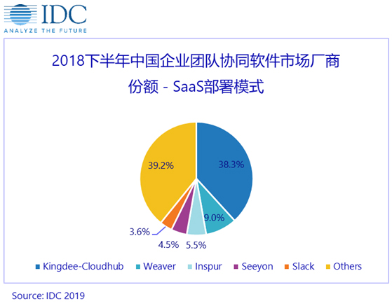 6月10日,全球知名信息技術(shù)咨詢公司IDC發(fā)布新《2018年下半年中國(guó)企業(yè)團(tuán)隊(duì)協(xié)同軟件市場(chǎng)跟蹤報(bào)告》。報(bào)告顯示,中國(guó)企業(yè)采用SaaS協(xié)同軟件的復(fù)合增長(zhǎng)率為35.3%,增速遠(yuǎn)高于傳統(tǒng)部署模式,到2023年,SaaS模式的企業(yè)團(tuán)隊(duì)協(xié)同軟件市場(chǎng)份額將上升為31.8%。目前,金蝶云之家(Kingdee-Cloudhub)是中國(guó)企業(yè)團(tuán)隊(duì)協(xié)同SaaS軟件市場(chǎng)的領(lǐng)導(dǎo)品牌,市場(chǎng)份額為38.3%排名,超過第二名至第五名的總和。