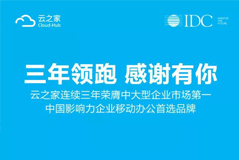 4.09日音訊,云之家蟬聯(lián)移動辦公(中大型企業(yè))市場NO1